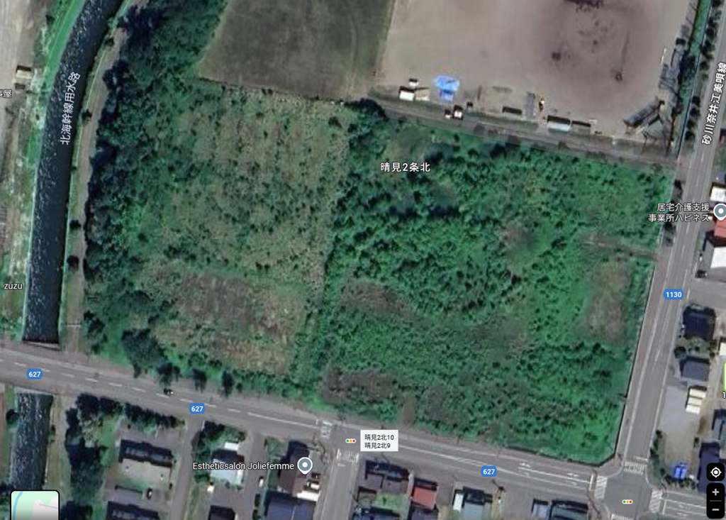 旧道立砂川北高等学校の跡地が上の写真です。右側に校舎があって左側にはテニスコートがあったかな。上から見ると緑豊かな緑地です。ところが・・・