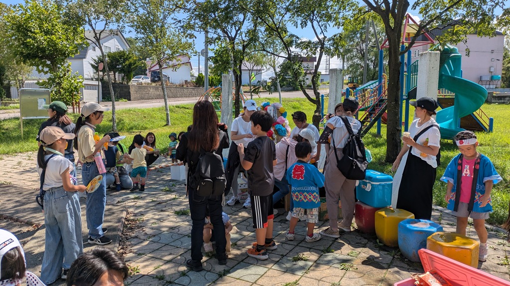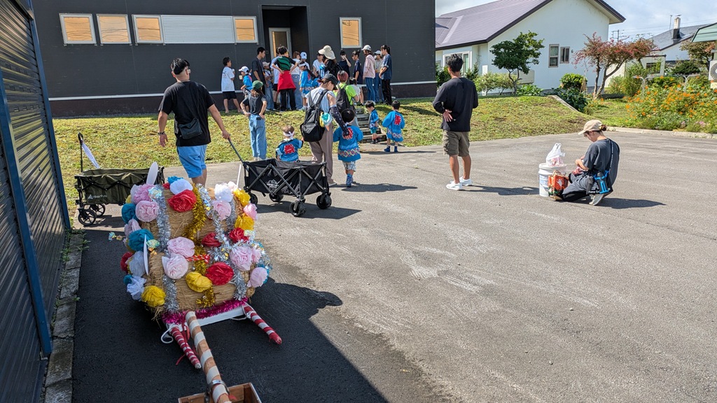 晴見町内会は小学生が中心になって子ども会が作られています。しかし、小学生は7人。未就学児や中学生も参加してくれて、まずまず賑やかに町内会一周のパレードの始まりです。