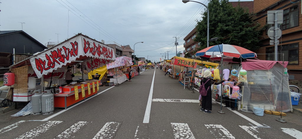 砂川市では今日、26日、27日と「市民まつり」が開かれます。市役所を出てから露店が出る通りの様子を見ました。