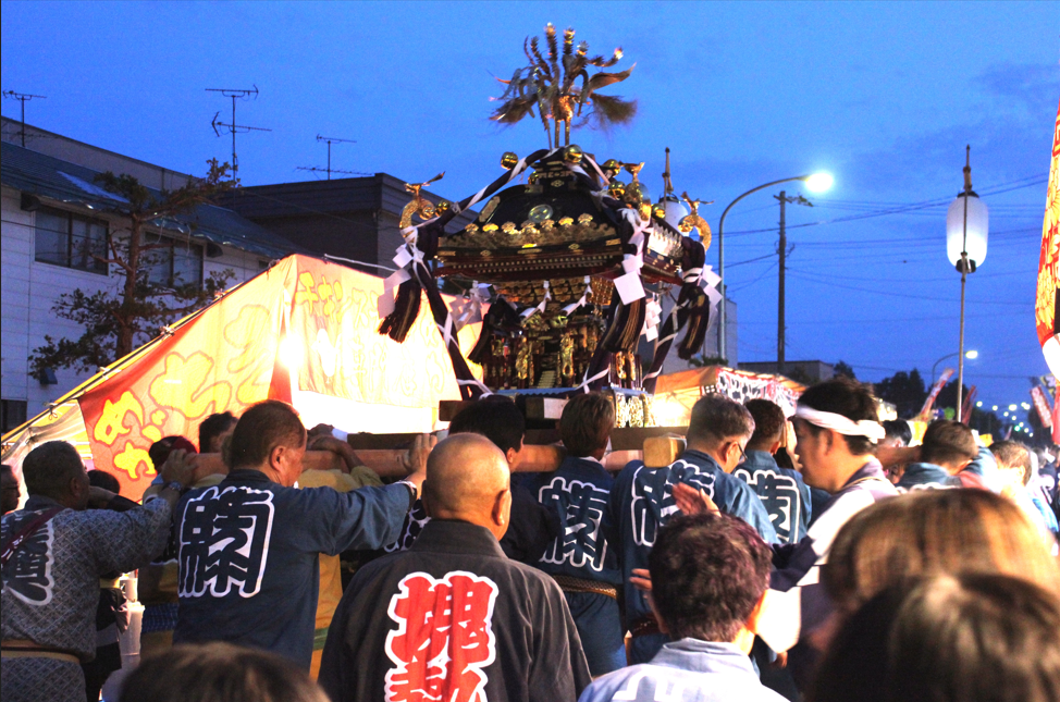 ちょっと写真が撮りづらく苦労しましたが、空知の神輿会が集まって夜店の中を賑やかな神輿渡御でした。