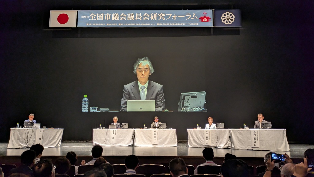 上の写真は「第20回 全国市議会議長会 研究フォーラム in 札幌」が開催された札幌文化芸術劇場hitaruをステージ側から撮っています。