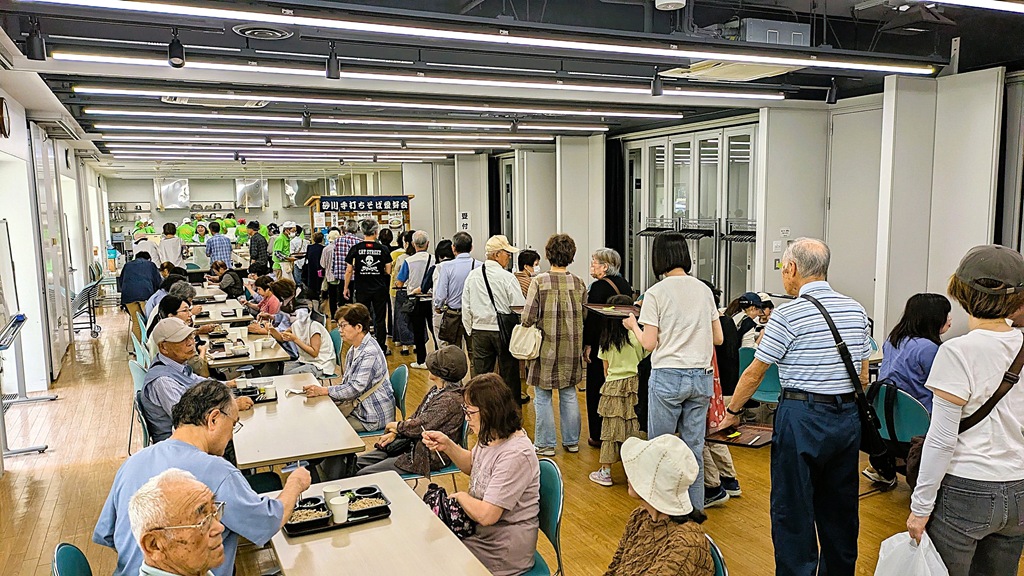 時間によってそば出しの行列が長く続き、ご迷惑をかける状態の時も。高齢化が著しい「砂川手打ちそば愛好会」は年々動きが悪くなっていて、年に一回、動きが慣れるまでに時間が掛かるようになりました。