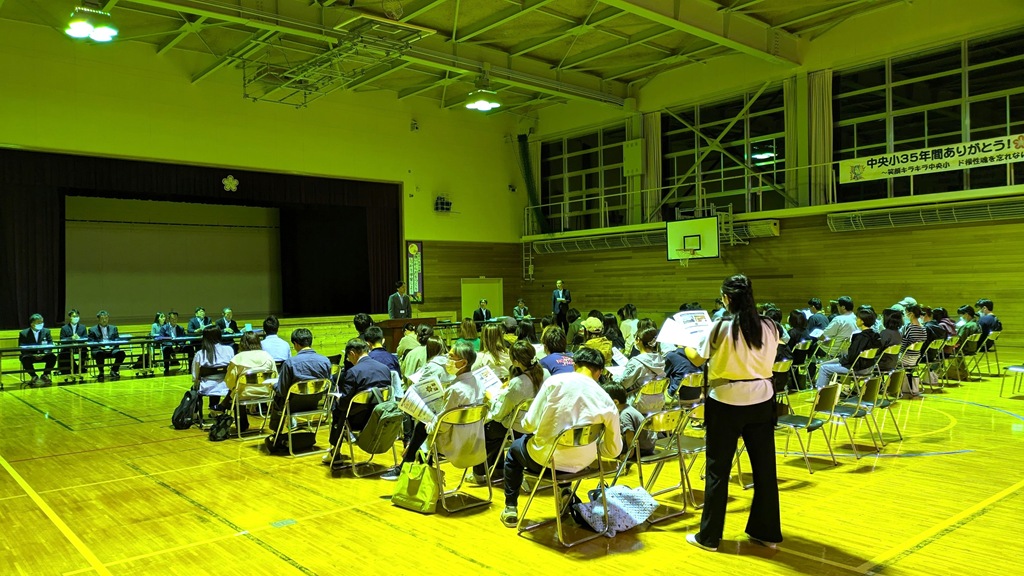 昨晩、午後6時30分から中央小学校体育館が行われた「砂川学園の開校に向けた保護者説明会」に行って来ました。