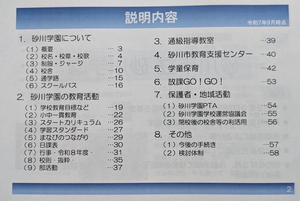 砂川学園の開校に向けた保護者説明会