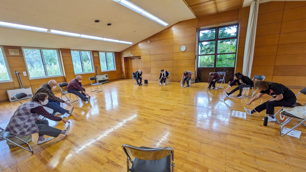 本日は10月のもう第3金曜日。地域運動サロン「ニコニコ広場」の日でした。いつものようにいきいき運動推進員さんのご指導で体を動かします。
