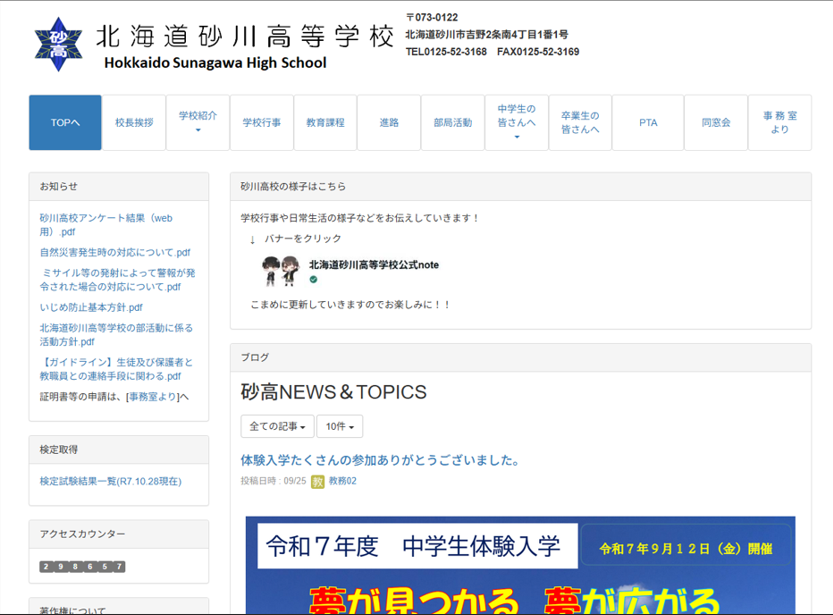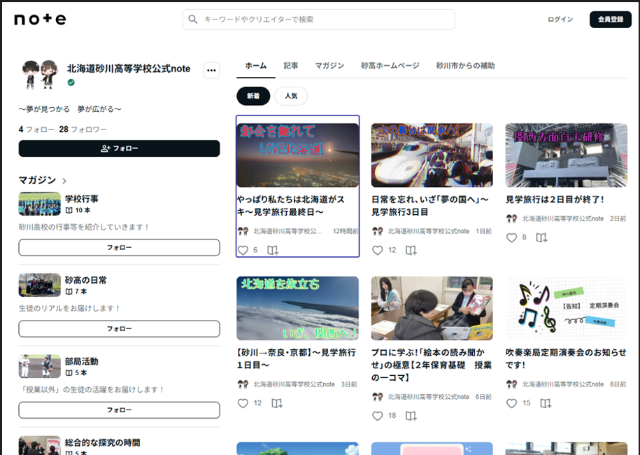 上の写真の左がトップ画面。そして、特に「北海道砂川高等学校公式note」の学校の日常が面白かったです。