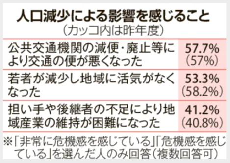 久し振りに道新WEBの記事を引用させていただきます。北海道の道民意識調査からの内容ですが、見出しが『北海道民6割「人口減少に危機感」 5割超が交通の便悪化を実感 北海道庁意識調査』と刺激的です。