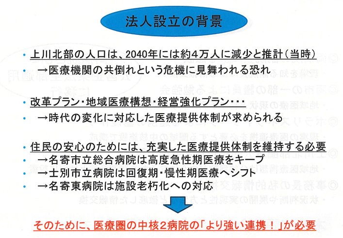 法人の設置が目的では無いと思いますが、中空知の地域医療を守るためのアイテムとしては重要な事柄だと思いました。