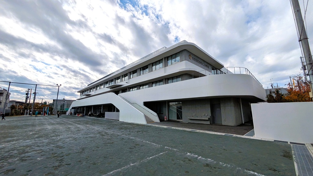 私の通っている頃はこんな校舎ではありませんでした。調べてみると昨年、敷地内に新築校舎で開校したとのこと。
