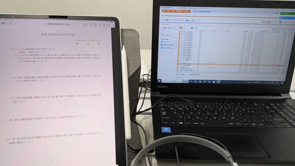 本日は20日に開催された「総務文教委員会」と10日に行われた砂川高校2年生との議会懇談会の音声データを午後から聞いてきました。