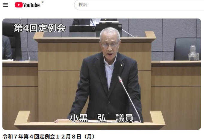 午前10時から令和7年度第4回定例会(12月議会)が始まりました。その様子はYouTube「令和7年第4回定例会12月8日(月)」で見ることができますのでリンクします。