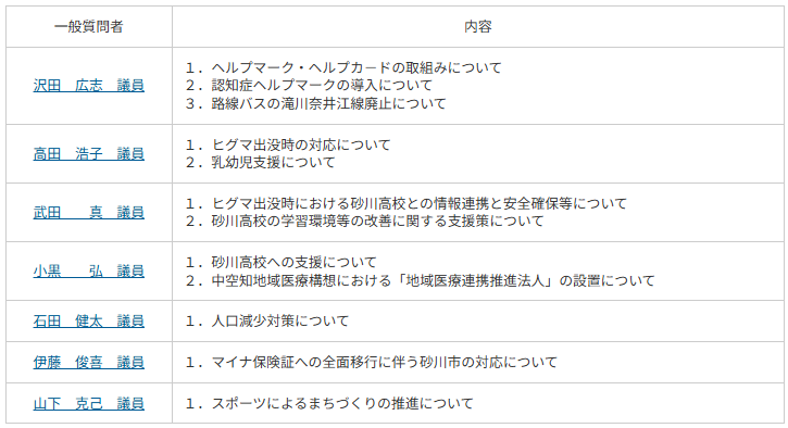 さて、下の写真ですが、12月議会の一般質問をした議員別に編集された一覧です。