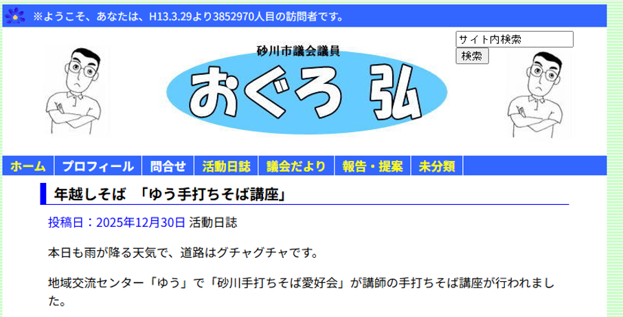 ほぼ毎日更新をしてきた「おぐろ弘」のHPですが、本日の朝のカウンターは「3,852,970件」でした。