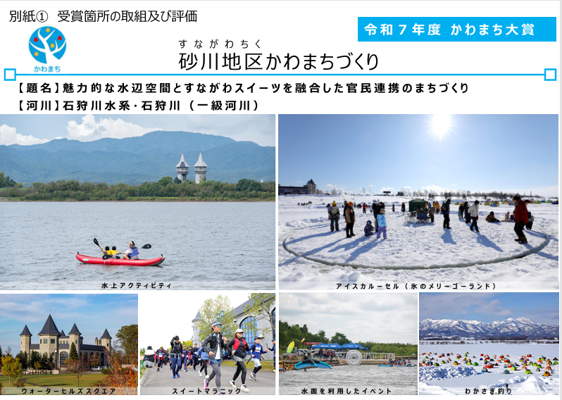 上の写真は砂川市のHP「砂川市が令和7年度『かわまち大賞』(国土交通省)に選定されました」のページ。リンクしますのでご覧ください。