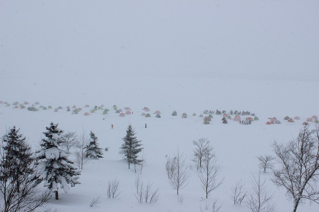 オアシスパークの管理棟屋上に上ると湖面全体が見渡せますが、本日のワカサギ釣りはテントの数で90張は超えていました。