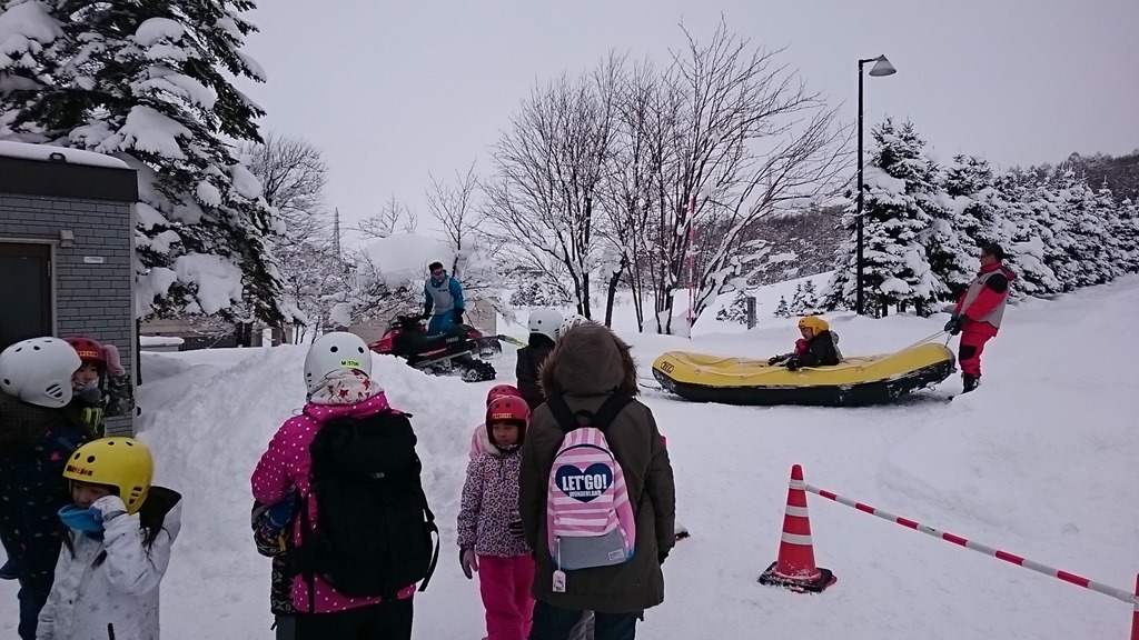 砂川の子ども達は雪と友達で、寒さもなんのその。雪まみれになって遊んでいます。上左の写真はスノーモービルでゴムボートを引っ張る「スノーラフティング」。以前に乗せてもらいましたが、思ったよりスピードも出て、上下に揺すられます。今回は遠慮しました。