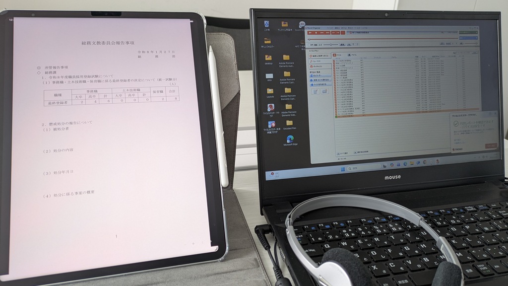 昨日は正副議長会議、会派打ち合わせの後、午後から1月27日に開催された「総務文教委員会」の音声データを聞いてきました。