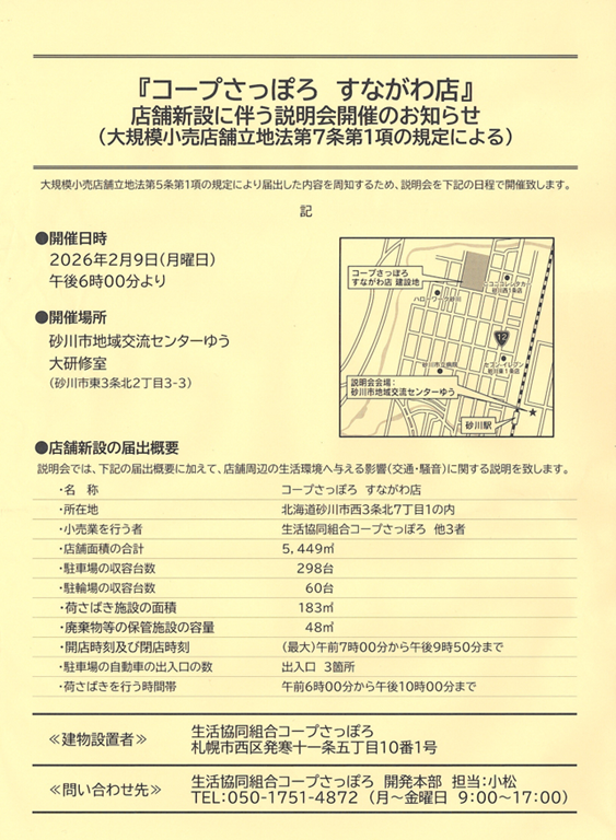 『コープさっぽろ すながわ店』店舗新設に伴う説明会