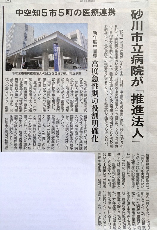 見出しだけを見ると誤解されそうですが、この法人は砂川市立病院だけで出来るものではありません。あくまでも地域の医療連携を推進するために「みんなで作る法人」です。