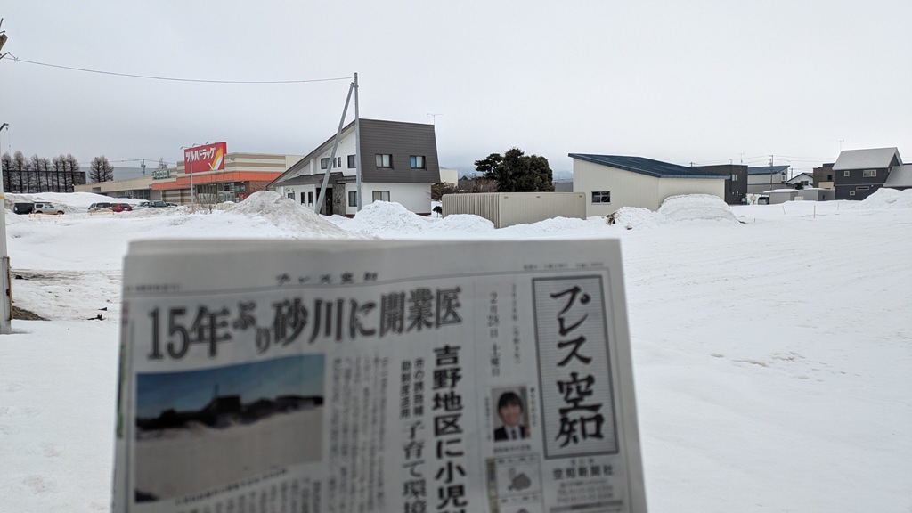 本日付のプレス空知の一面に「15年ぶり砂川に開業医」の記事が。しかも開業予定地の写真も掲載されていましたので行って来ました。