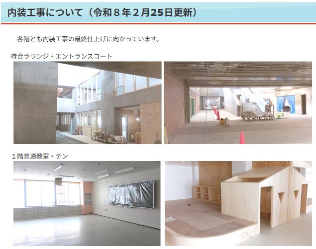 ちょっと古いネタですが、内装も順調に進んでいる様子。だいぶイメージが分かるようになっていますので「砂川市義務教育学校建設工事の進捗状況」にリンクしますのでご覧ください。