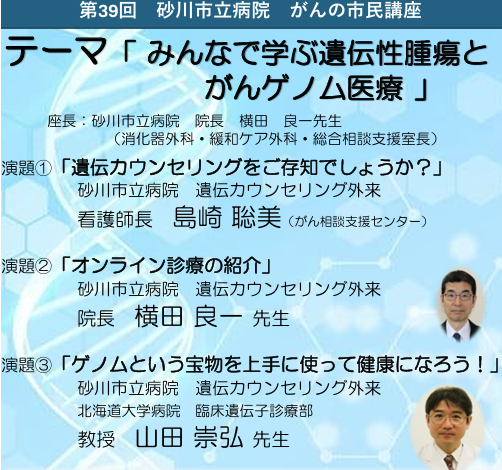 今回の講座の内容が気になった方は市立病院の「遺伝カウンセリング外来の開設について」にリンクしますのでご覧ください。