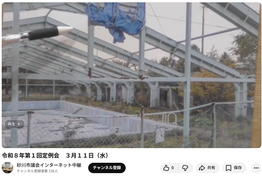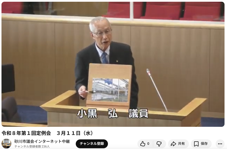 詳細については、編集後のインターネット中継録画が砂川市議会HP「令和8年第1回定例会 3月11日(水)」で見ることができますのでリンクします。