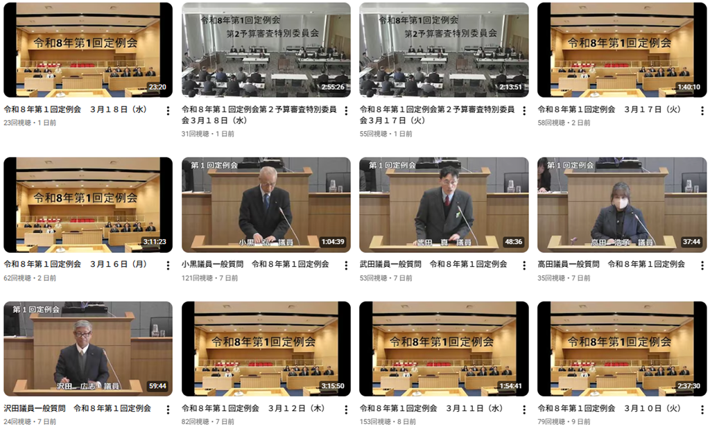 上の写真は砂川市議会のHP「砂川市議会インターネット中継」のページで3月議会の録画をまとめたものです。