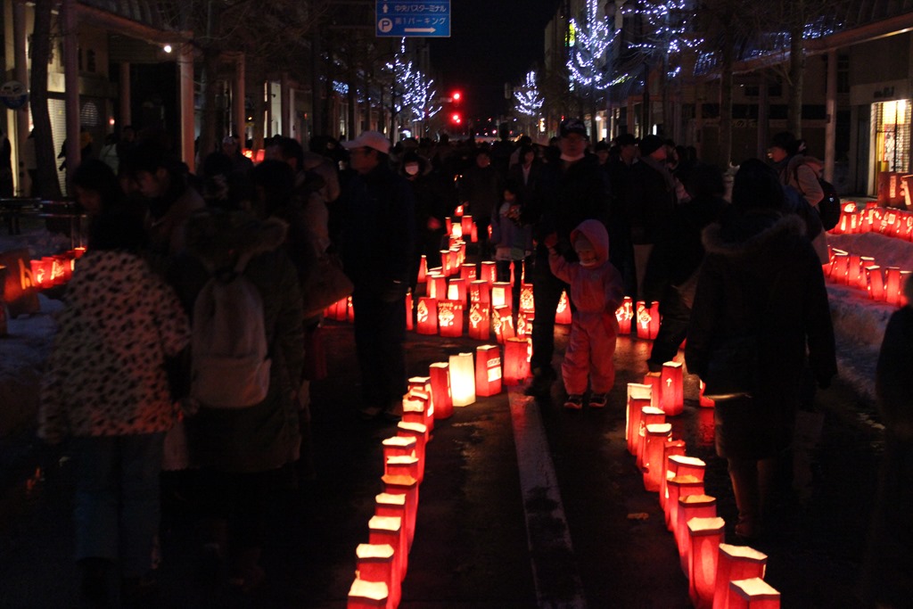滝川市の紙袋ランターンフェスティバルを見てきました。市民手づくりの紙袋ランタンが約12,000個並べられたそうです。