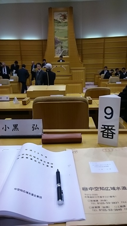 上の写真は昨日午後2時30分から滝川市の議場で開かれた「中空知広域水道企業団議会」が午後4時30分に終了した後の様子です。