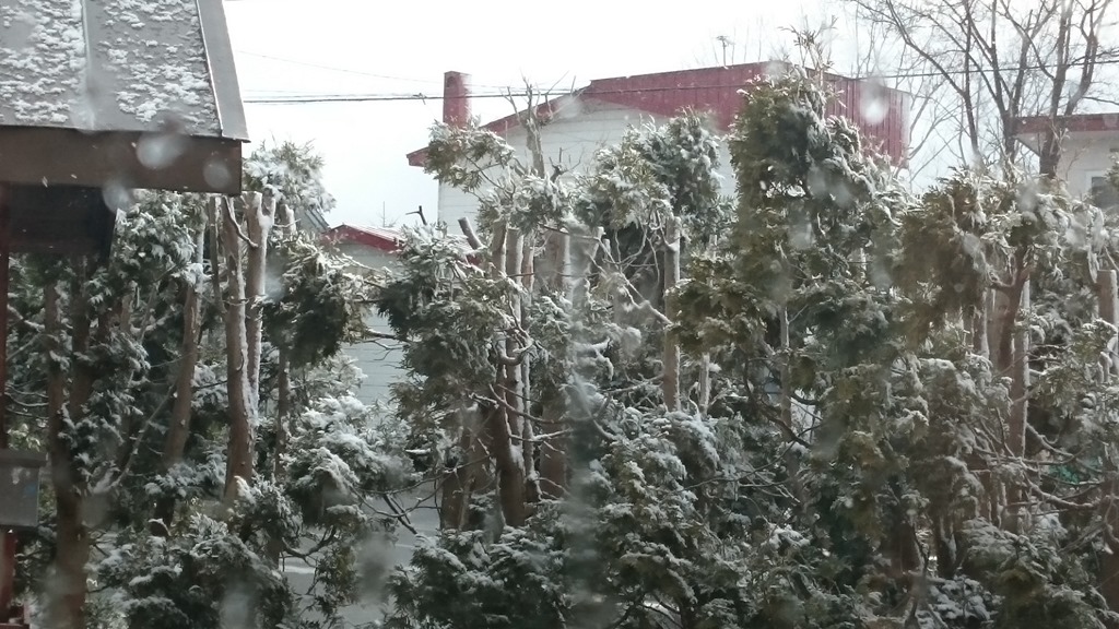 本日、午後4時ごろの砂川です。心が寒いのではなく、体が寒いと思っていたら雪が降り出しました。少し、木々に積もっています。『もう、雪はいいんだけど・・・』。その後、雪は降り続かなくホッとしています。