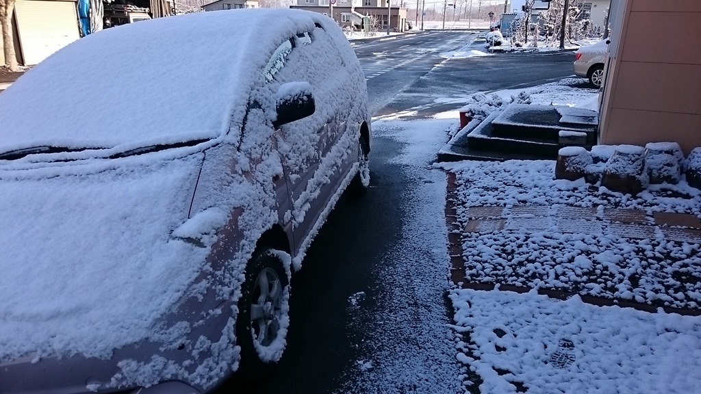 上の写真を見て下さい。一気に冬景色に戻りました。天気が良かったので放射冷却で冷えたのかも知れません。幸い冬タイヤを交換していなかったので運転することはできましたが、三寒四温で本当に暖かくなるのか心配しました。