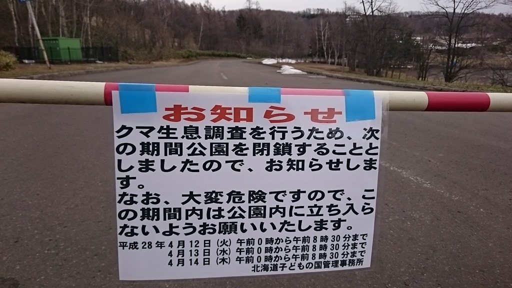 立ち入り禁止の理由は「クマ生息調査」のためでした。大型連休を前に開園間近だと思いますが、冬眠から目覚める季節でクマの動向も気になります。