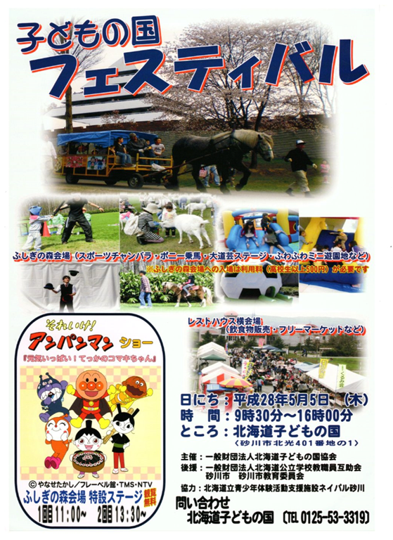 上の写真は市内にある「道立子どもの国」で5日のこどもの日に開催される「子どもの国 フェスティバル」のポスターです。