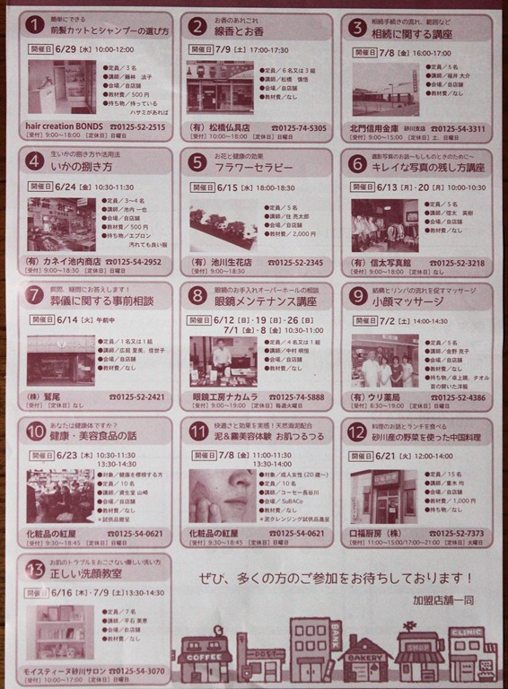 本物のチラシより少し濃い目に写っていますが、各商店の店主やスタッフが講師となって専門的な知識や情報などを伝えるミニ講座です。