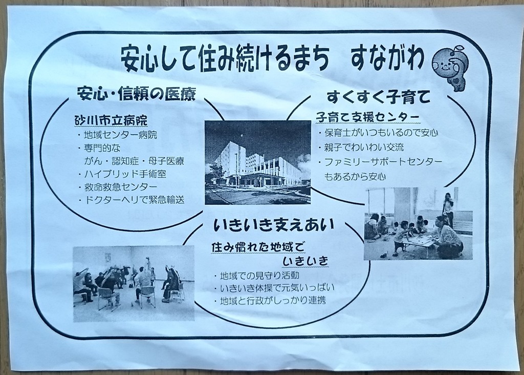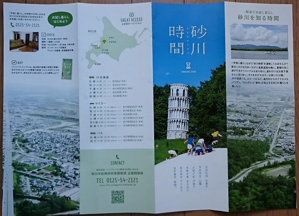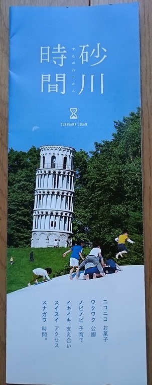 三谷果樹園も返礼品に参加していただいているので、返礼品と共に砂川を紹介する物を聞きました。すると、今は上の写真の「砂川時間」と言う細長いパンフレットと