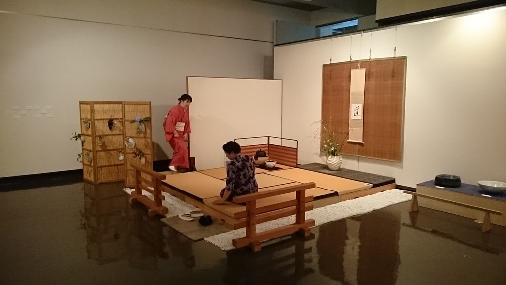 これまでも多くの賞を受けている大野さんの作品は器が多いです。作品展では、右の写真のような展示もあり、使われてこそ「器」の世界が表れていました。