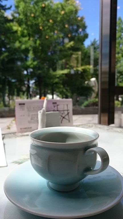 また、会場である美術自然史館の喫茶コーナー(常設)では大野さんの作品でコーヒーが飲めるサービスが会期中行われていて、外の木々を眺めながらゆったりとした時を過ごすのもイイですネ。