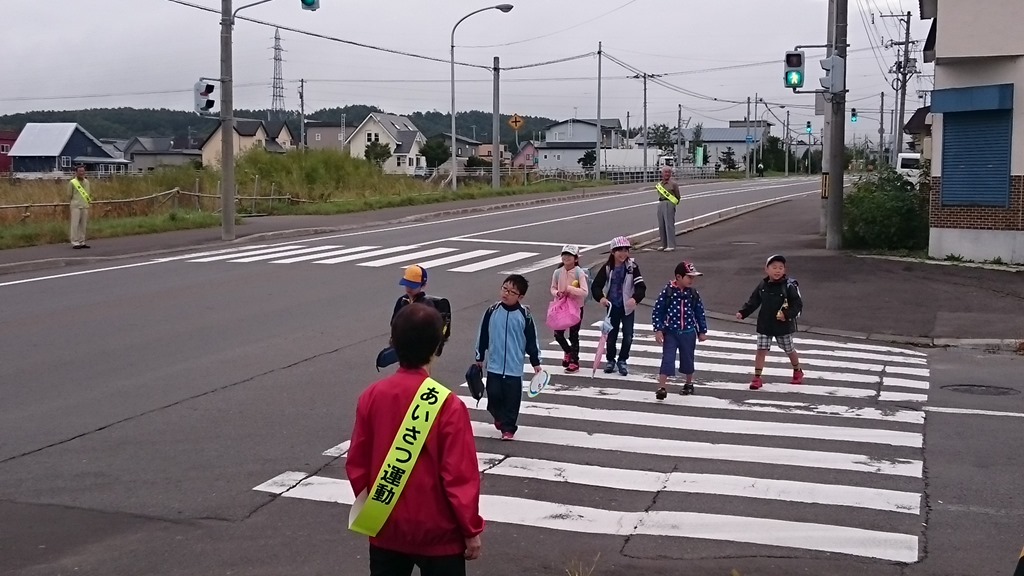 今朝も午前7時20分に集まって子ども達に挨拶を送りました。写真は別の角度から。2日目になると子どもたちの声も大きくなってきます。