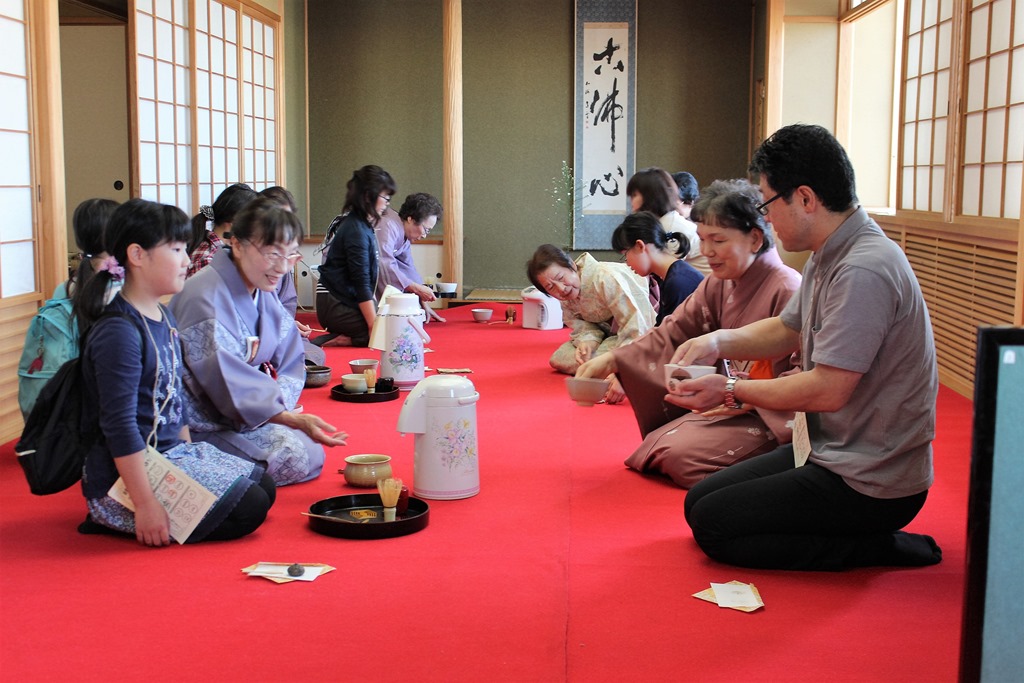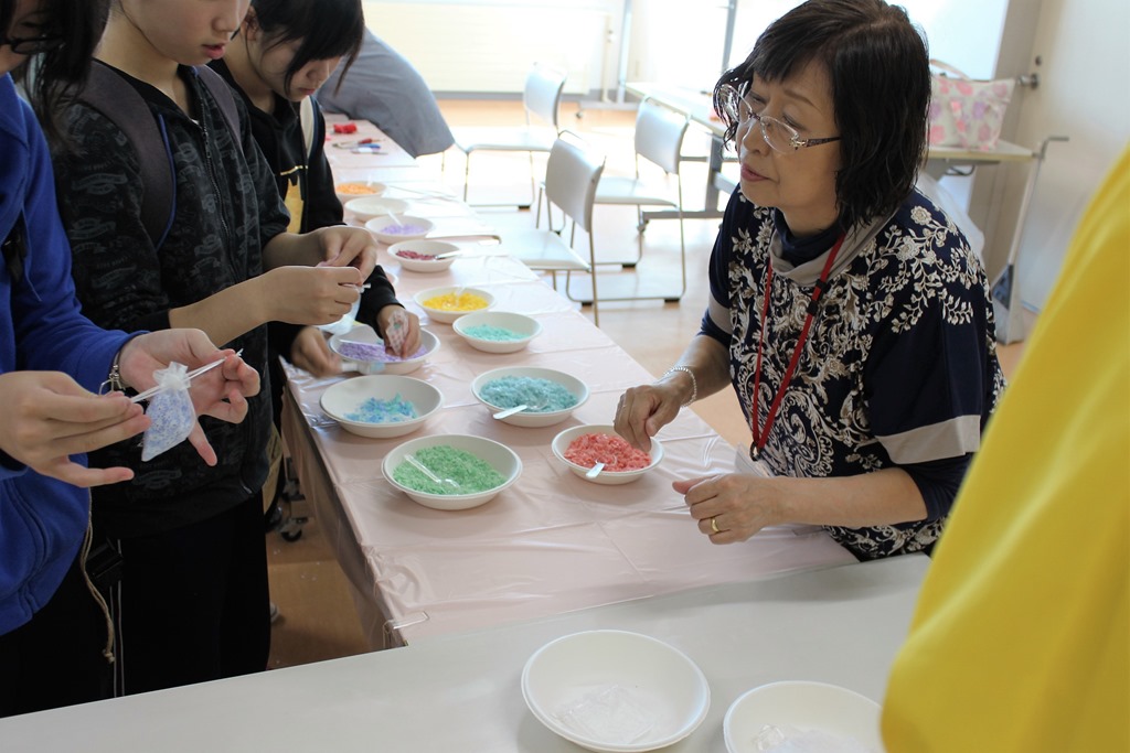 続いて、左は化石発掘体験、真ん中は香り袋づくり、そして、右は茶道体験。