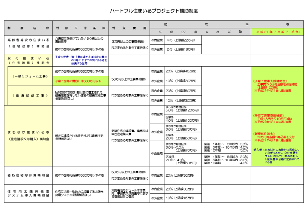 砂川市では新築したり、中古住宅を購入したり、住宅を直したりすると補助がでる「ハートフル住まいるプロジェクト補助制度(pdf)」(写真)があります。