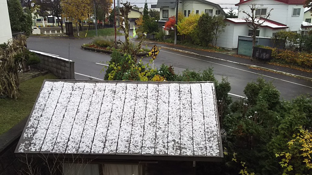 天気予報通り、目が覚めて外を見ると初雪です。サラッと積もった程度でしたが、いよいよです。