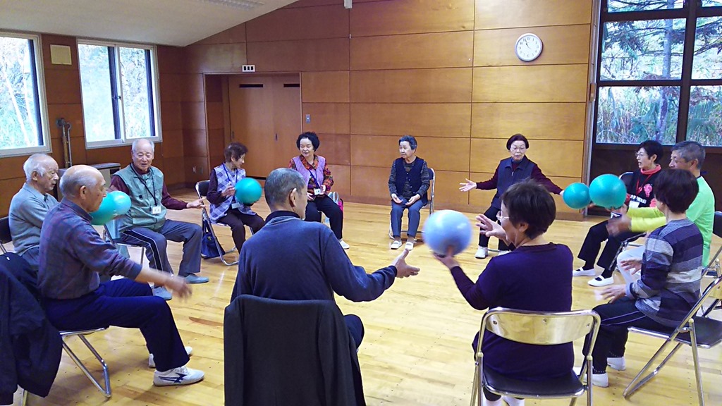 本日は10月の第3金曜日で運動サロン「ニコニコ広場」の日でした。いきいき運動推進員のボランティアさんの指導で元気いっぱい体を動かしました。東コミセンもストーブ点けました。