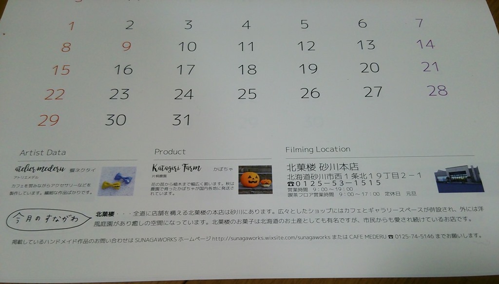 〈すながわ生まれのカレンダー〉