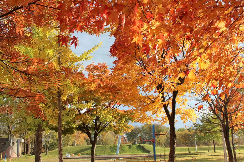 本日もどんより曇り空。吹く風は冷たいですが、外出中にちょっとの間、日が射しました。場所は海洋センター横の公園ですが、きれいな紅葉も終わりに近くなりました。