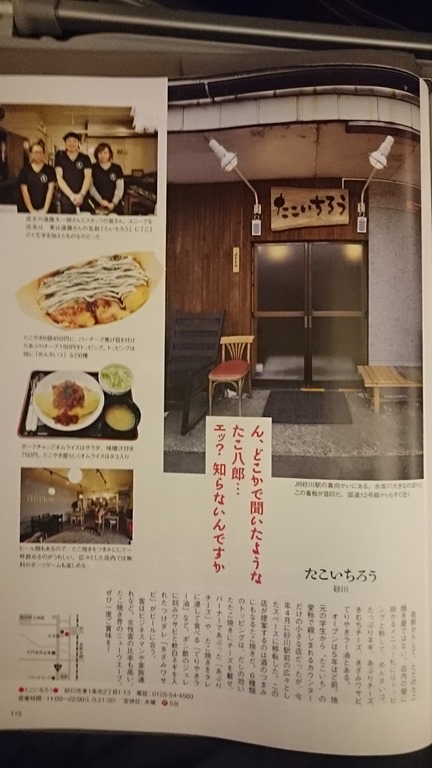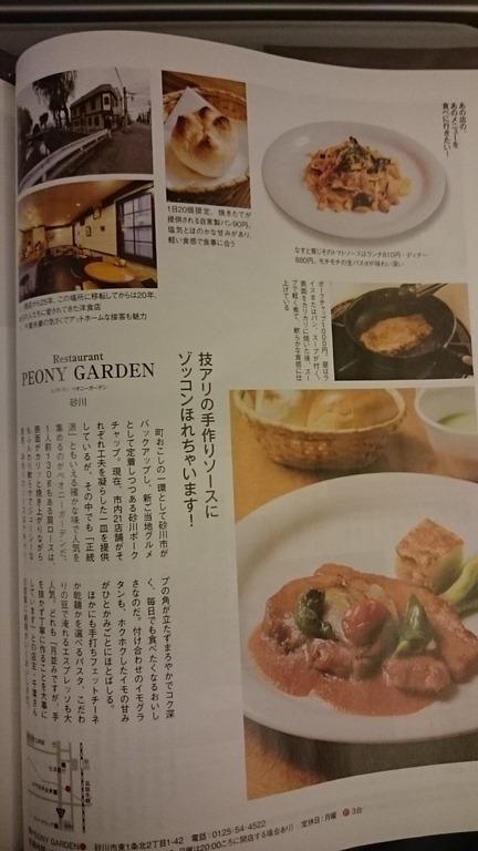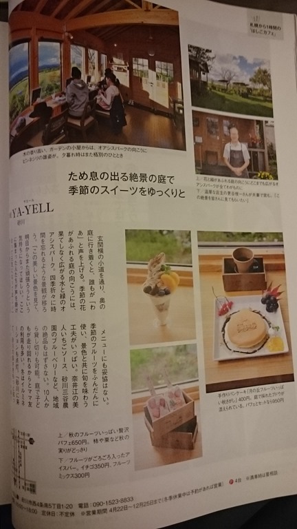 昨日、神戸空港からの道民の翼「エア・ドウ」で借りた雑誌HOの最新号に砂川市内のお店が掲載されていましたので、写してきました。