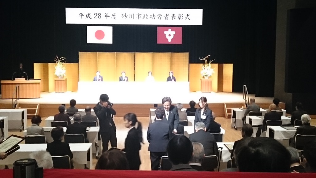 上の写真は、午前10時から開かれた「砂川 市政功労者 表彰式」です。