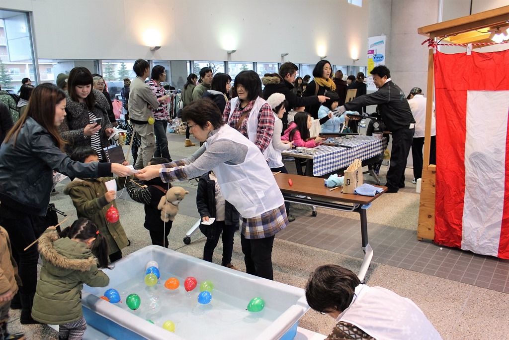 2階の子どもゾーンでも、ニュースポーツ体験教室が行われ、魚釣り、輪投げなどもたくさん参加していました。