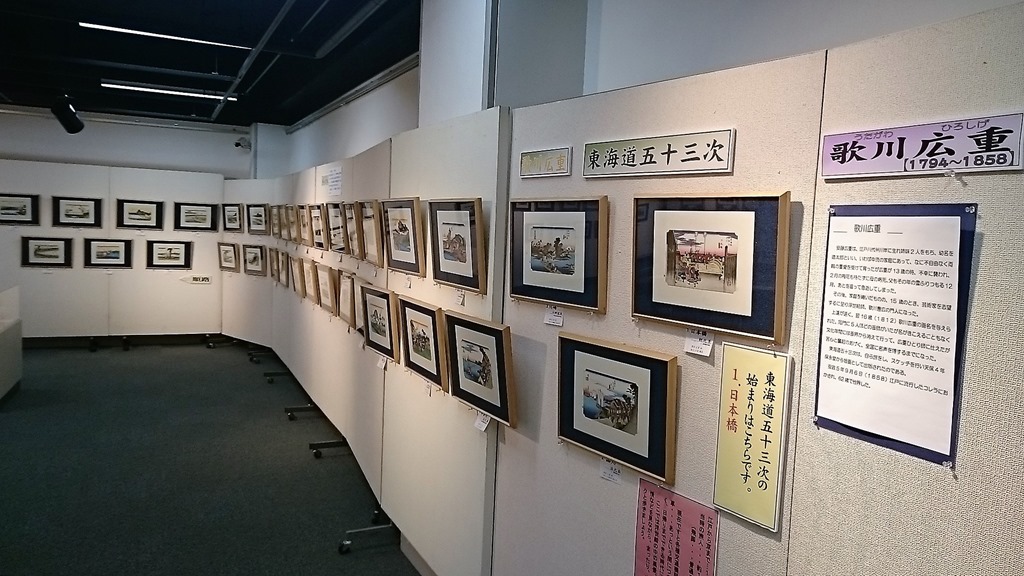 東海道は53の宿場があって53次と呼ばれていますが、広重の絵は55枚あるのが分かりました。その全部が展示されていて、なかなか見ごたえがありました。