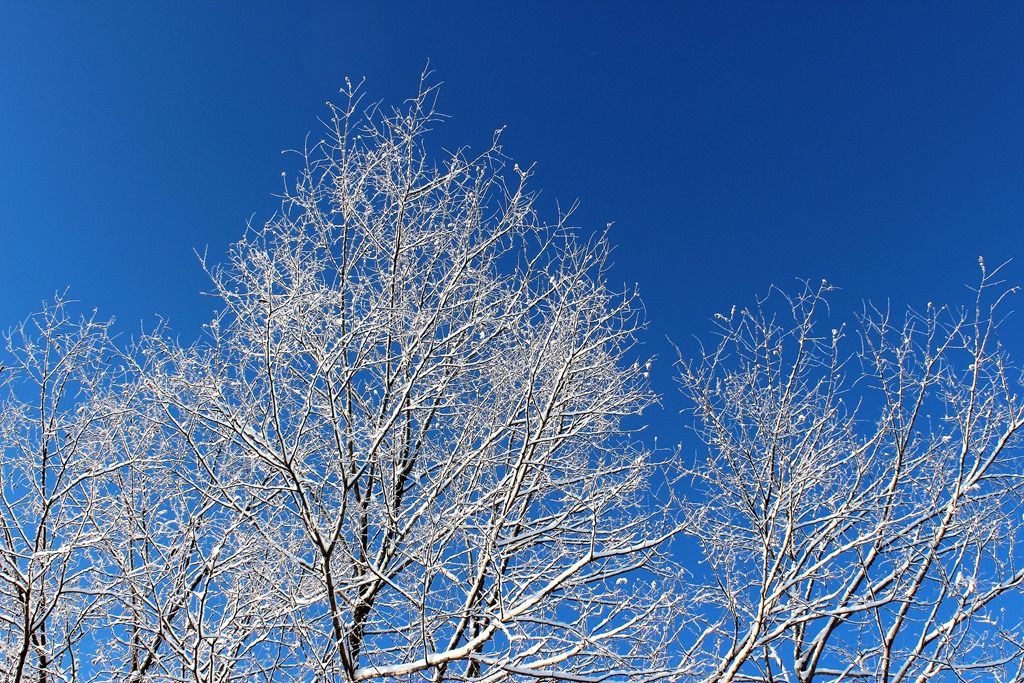 今朝の砂川です。葉が落ちた木々に雪が着いてとてもきれいでした。